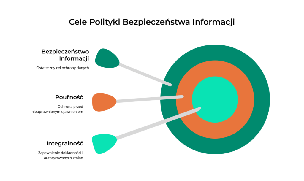 Z tą wiedzą można zdefiniować cele polityki bezpieczeństwa informacji. Te cele powinny być zgodne z założeniami modelu CIA (ang. confidentiality, integrity, availability), czyli poufnością, integralnością i dostępnością. Poufność informacji oznacza, że są one chronione przed nieuprawnionym ujawnieniem, zaś ich integralność to pewność, że nie zostaną zmienione bez autoryzacji. Uprawnione osoby muszą też mieć dostęp do informacji wtedy, gdy go potrzebują. Cele te powinny być sformułowane na tyle konkretnie, by organizacja mogła zweryfikować, czy je realizuje. Przykładem może być wskazanie maksymalnego dopuszczalnego czasu niedostępności kluczowych systemów.