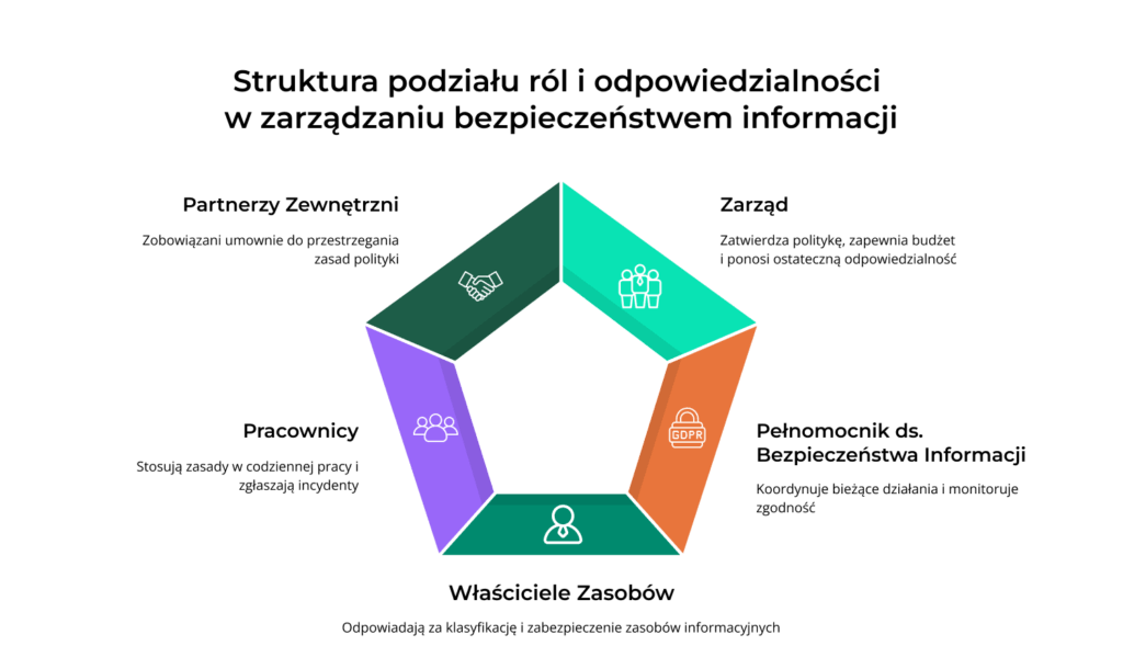 Skuteczne zarządzanie polityką bezpieczeństwa wymaga jasnego podziału ról. Każda osoba w organizacji powinna wiedzieć, za co odpowiada w kontekście ochrony informacji.
